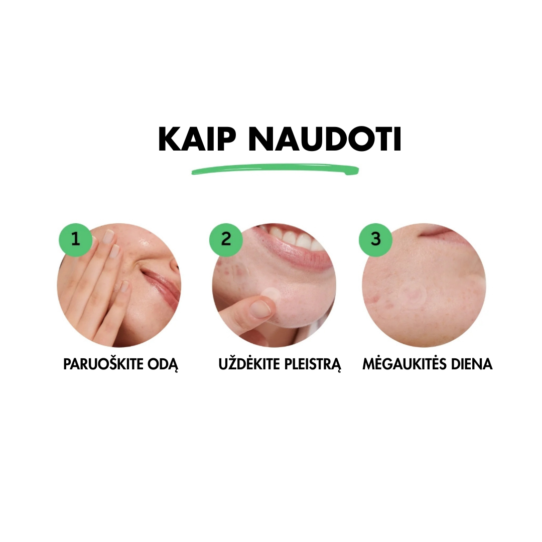 Pleistrai saugūs visų tipų odai, įskaitant jautrią. Jie apsaugo probleminę vietą nuo nešvarumų, sugeria uždegiminį turinį ir skatina natūralų gijimą be chemikalų. Dermatologiškai patvirtinti, be kvapiklių, veganiški ir be žiauraus testavimo – sukurti pagal šiuolaikinės odos priežiūros standartus.